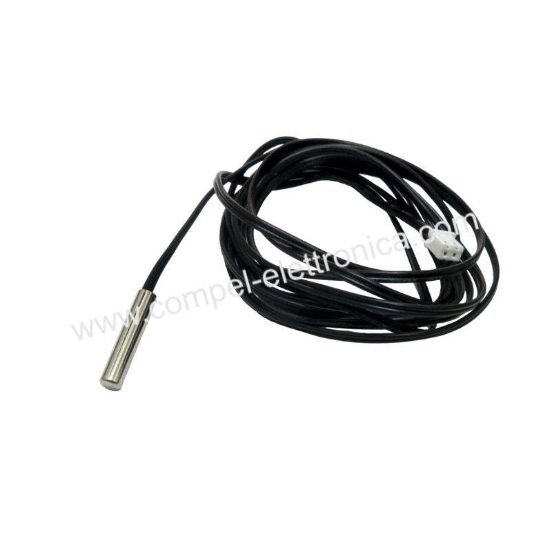 Sonda di temperatura realizzata con una NTC da 10 kohm, inserita in un cilindro in acciaio inossidabile e isolata in modo da renderla completamente waterproof.
