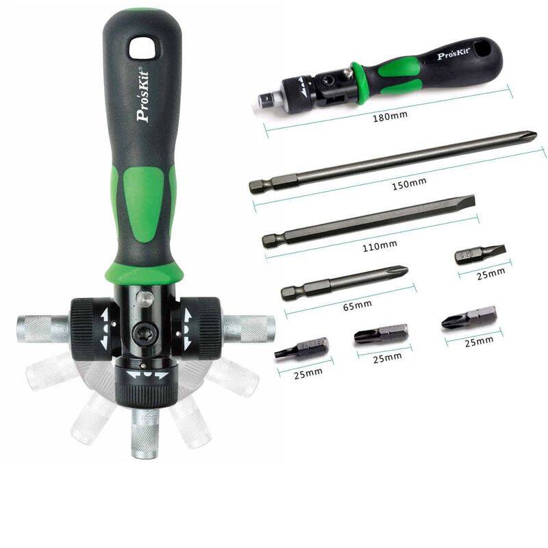 Descrizione: Set di utensili di precisione Cacciavite a cricchetto reversibile ed orientabile in 3 posizioni differenti con 25 inseriti intercambiabili Proskit SD-2314M con custodia
