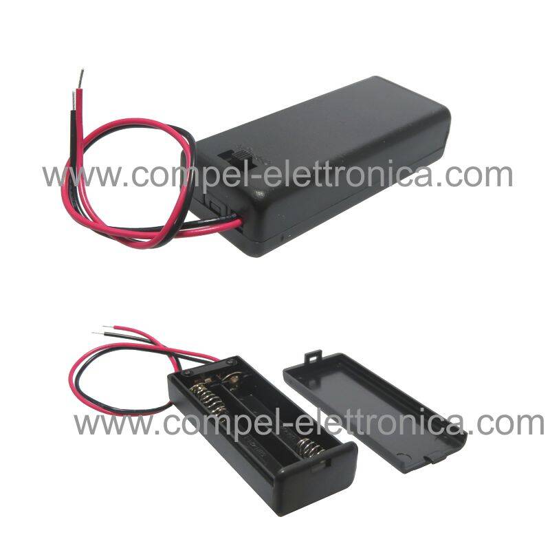 PORTABATTERIE PER 2 BATTERIE MINISTILO AAA CHIUSO CON INTERRUTTORE