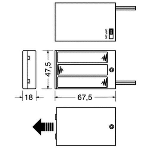 Descrizione: Portabatteria per 3 batterie stilo TIPO AA - LR06 UM3 con interruttore ON-OFF chiuso da un coperchio e con connessione a filo