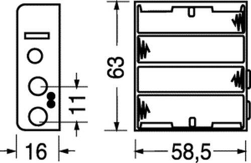 PORTABATTERIE PER 4 STILO AA ORIZZONTALE CON CONTATTO A BOTTONE (CLIP)