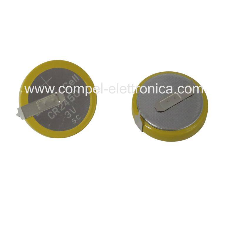 CR 2450 BATTERIA LITIO 3V SALDARE A CIRCUITO STAMPATO 2 PIN ORIZZONTALE
