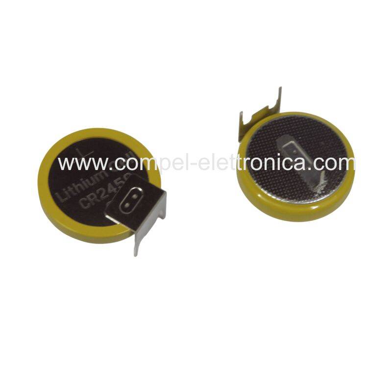 CR 2450 BATTERIA LITIO 3V SALDARE A CIRCUITO STAMPATO 3 PIN ORIZZONTALE