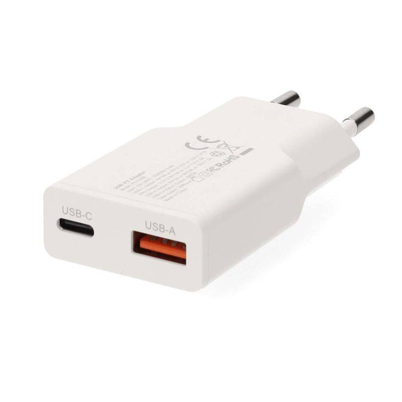 CARICABATTERIE DA RETE AC 110V/240V USCITA USB-A E USB-C 20W BIANCO