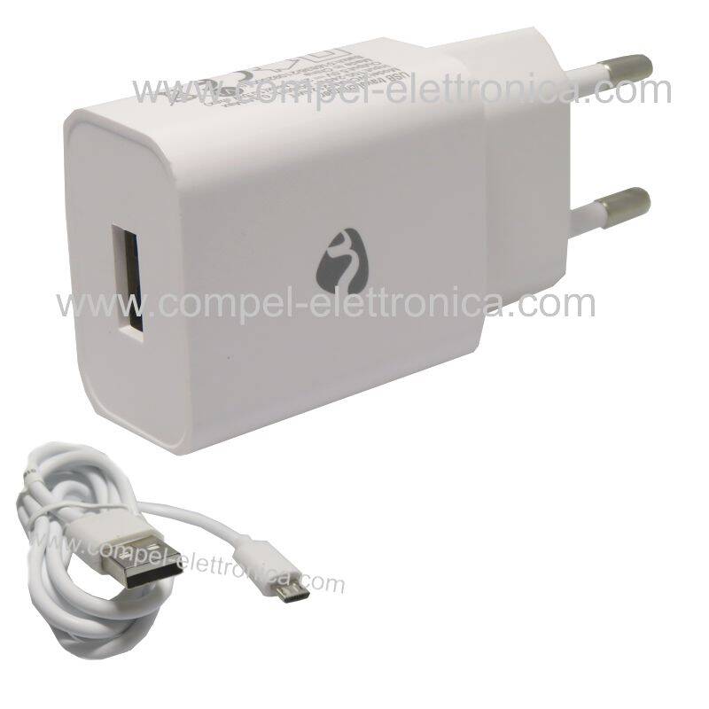 CARICABATTERIE DA RETE AC 240V USCITA USB 5V 2,1A BIANCO CAVO MICRO USB