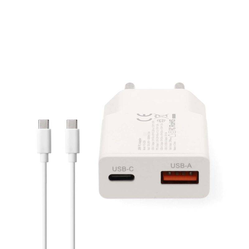 CARICABATTERIE DA RETE AC 240V USCITA USB-A/ USB-C 20W BIANCO cavo USB-C