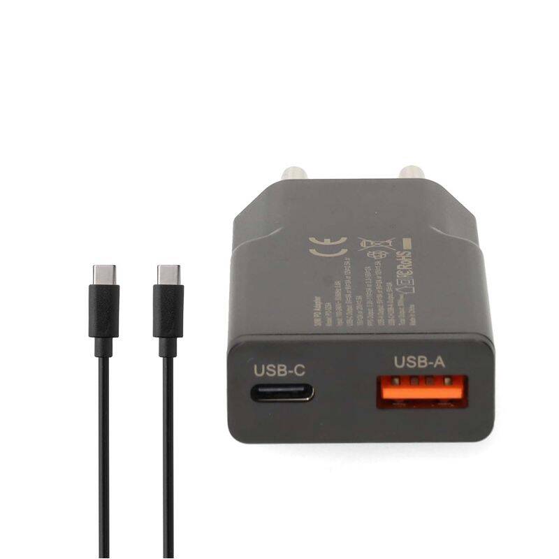CARICABATTERIE DA RETE AC 240V USCITA USB-A/ USB-C 20W NERO cavo USB-C