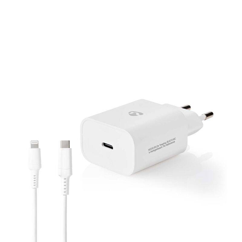 CARICABATTERIE DA RETE AC 240V USCITA USB-C/ 20W BIANCO cavo LIGHTNING