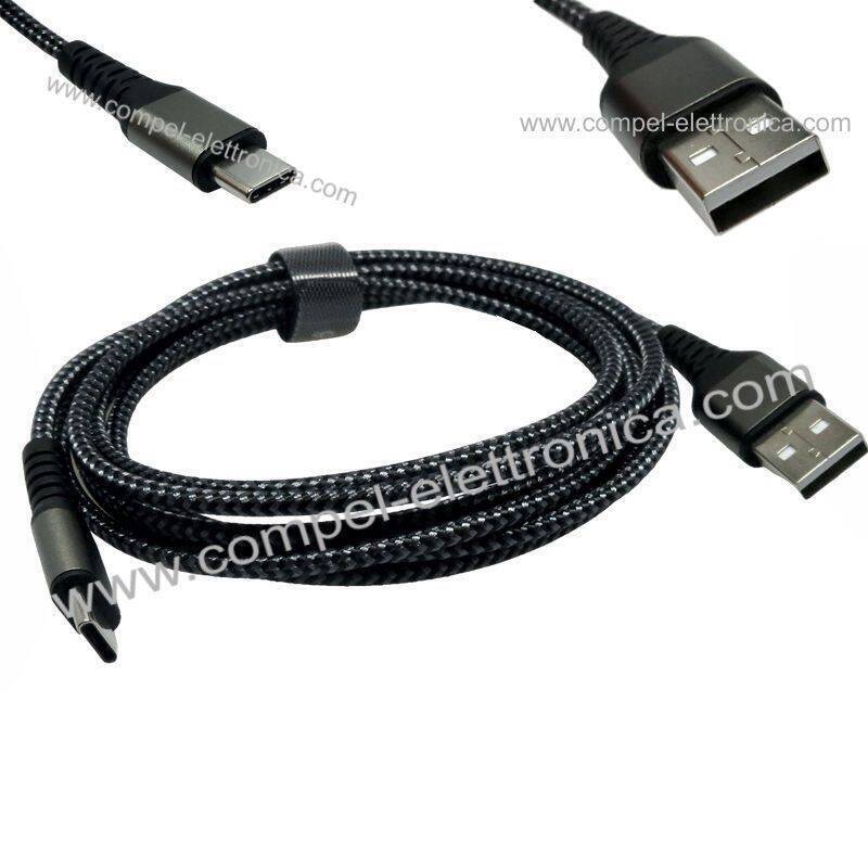 Descrizione: Cavo con connettore USB-C 2.0 maschio A connettore USB-A 2.0 maschio cavo cordato tessile , alta qualità.