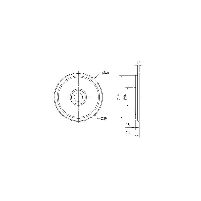 Dimensioni: diametro 40mm Altezza 4,5mm Diametro del foro di montaggio 36,5 mm