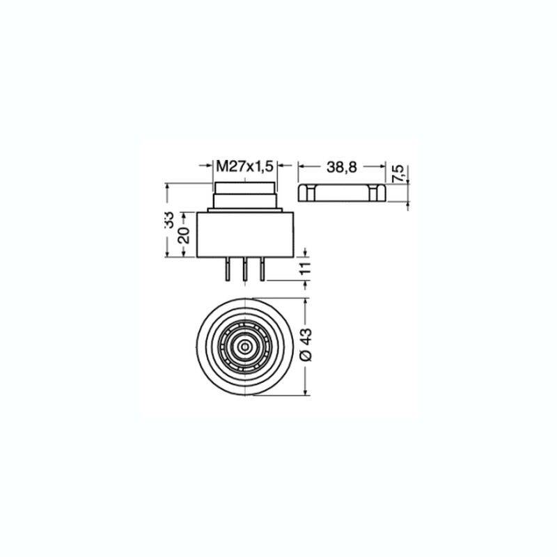 Dimensioni: DIAMETRO 44 mm DIAMETRO CICALINO 27 mm ALTEZZA (senza faston) 34 mm