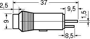 Dimensioni: lunghezza totale 37 mm altezza 9 mm