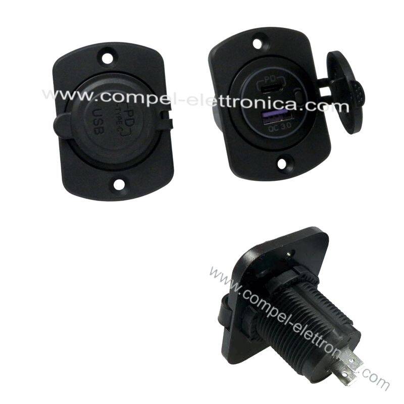 Descrizione: Presa di alimentazione USB-A USB-C 3.0 adatta a tutti i mezzi dotati di alimentazione 12V o 24v,tipo moto, auto, barche, camper.