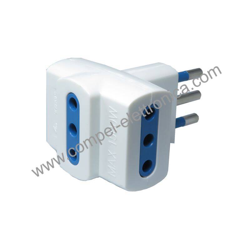 ADATTATORE SPINA 10A 250VAC 2P T A 3 PRESE 10A 250VAC BIANCA