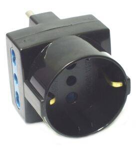 ADATTATORE SPINA 16A 250VAC A PRESA SCHUKO 2 PRESE 10/16A 250VAC NERA