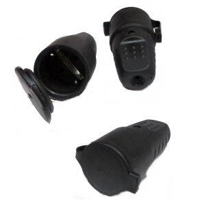 Descrizione: Presa rete SCHUKO 16A 250VAC con gomma nera protezione IP44 e tappo di protezione