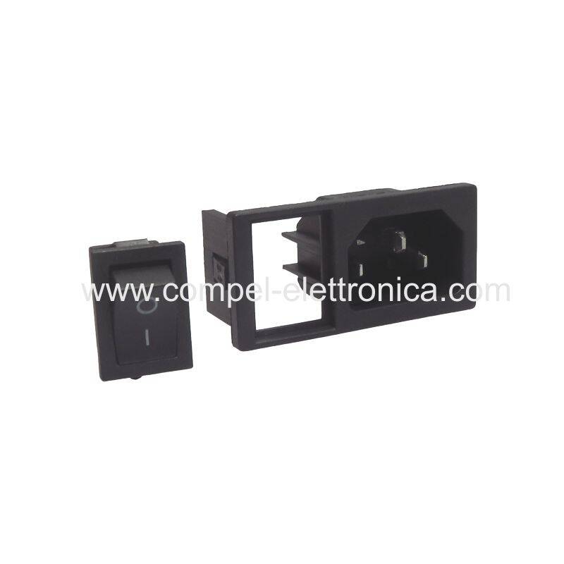 SPINA PANNELLO TRIPOLARE 10A 250Vac C14 - CON INTERRUTTORE AUTOBLOCCANTE
