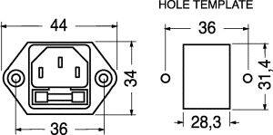 SPINA PANNELLO TRIPOLARE 10A 250Vac VDE C14 CON 1 PORTAFUSIBILE