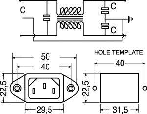 Descrizione: Spina di alimentazione tripolare da pannello con filtro rete EMI/EMC
