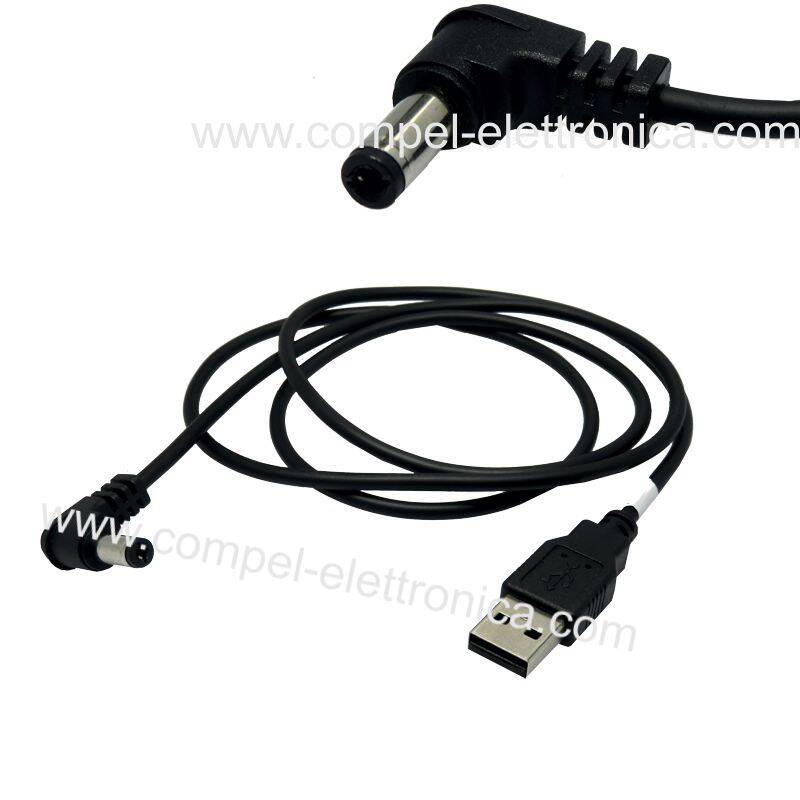 Descrizione: Cavo di alimentazione da USB/A a spina DC 5,5/2,5 ad angolo 90°