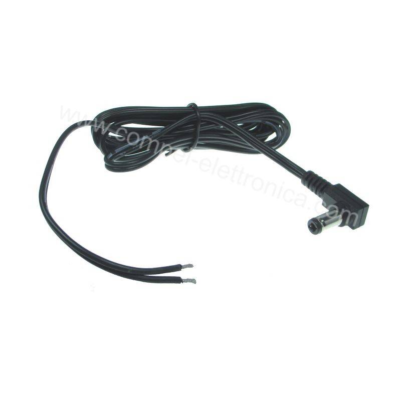 CAVO ALIMENTAZIONE DC CON SPINA D.5,5X2,5MM A 90° 1,5MT NERO