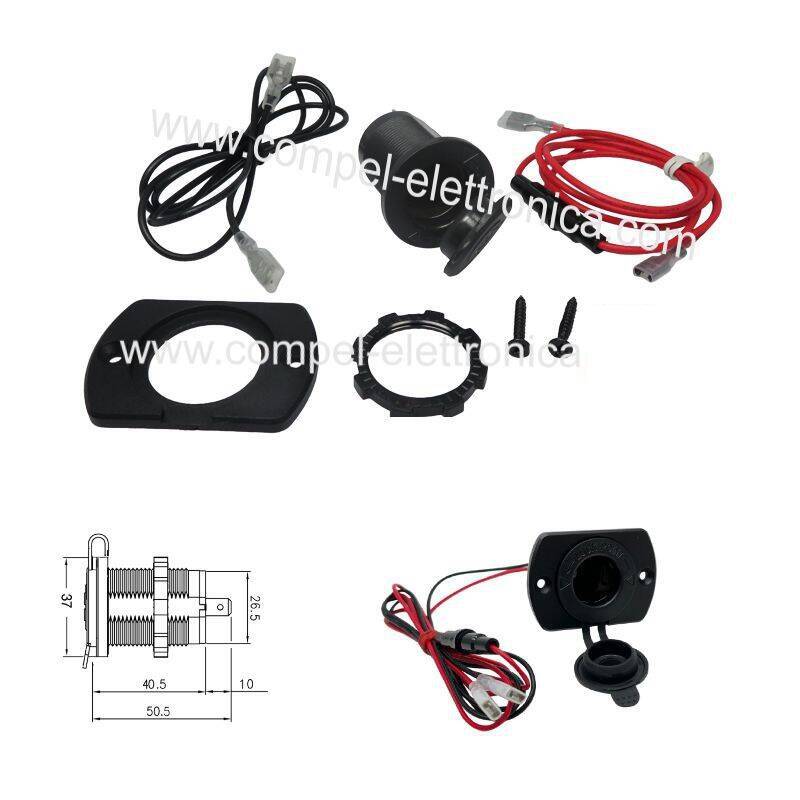 PRESA ACCENDISIGARI DA PANNELLO CON TAPPO ISOL. CAVETTO R/N E FUSIBILE
