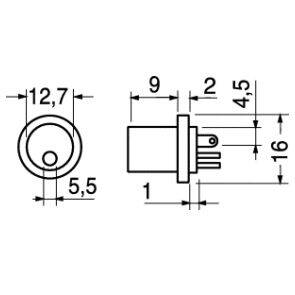PRESA ALIM. DC Ø 5,5MM/2,1MM FISSAGGIO CON GHIERA FRONTALE BACHELITE