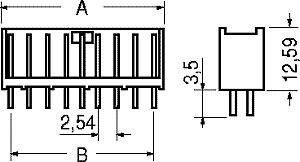 Descrizione: Connettori maschi su fila doppia dritta per circuito stampato 4x2 Poli serie MODU II THT