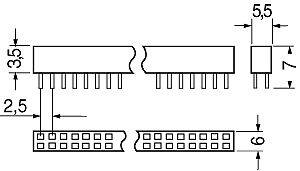 Descrizione: Connettori strip line femmina su fila doppia per circuito stampato THT, divisibile, terminali diritti.