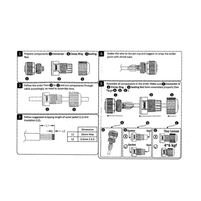 Descrizione: Connettore industriale M12 spina maschio volante 4 PIN dritto