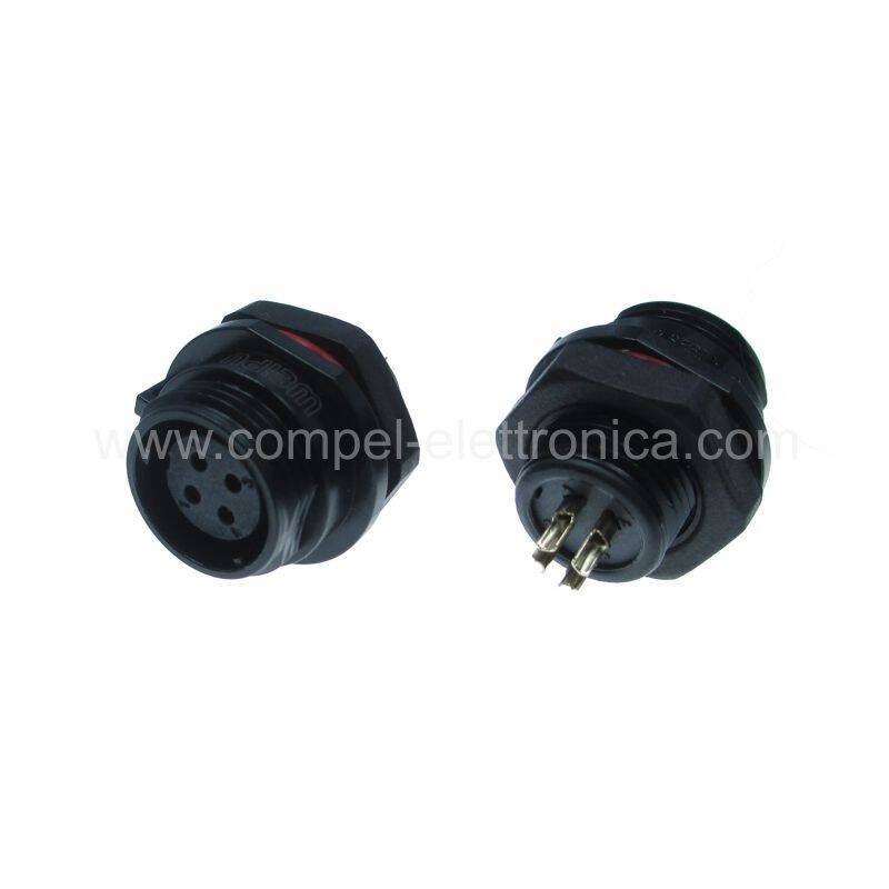 PRESA SP13 FEMMINA PANNELLO 4 POLI IP68 FILETTATURA ESTERNA