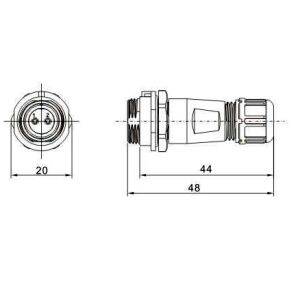 Descrizione: Connettore waterproof presa volante femmina 3 poli filettatura esterna