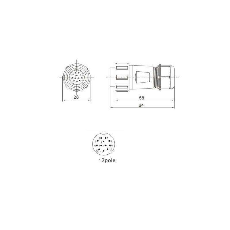 Descrizione: Connettore waterproof spina volante maschio 12 poli filettatura interna