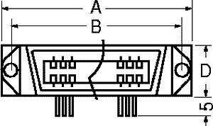 Descrizione: Presa, o connettore, centronics femmina ad angolo 90°, per circuito stampato.