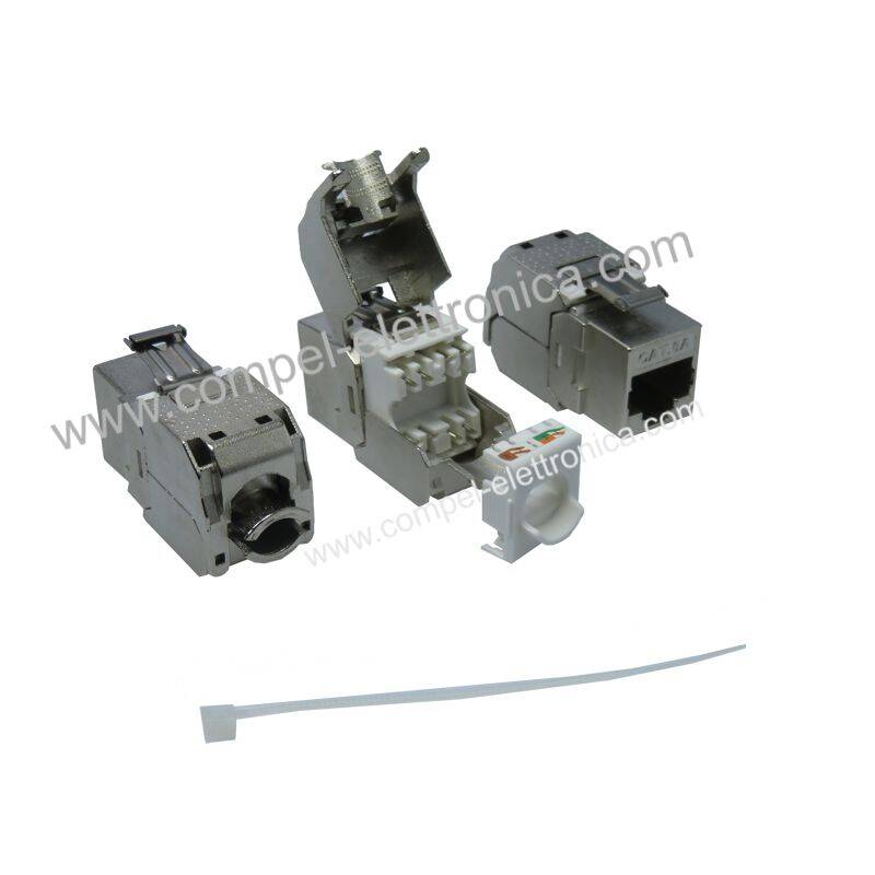 Descrizione: Presa Keystone 8P8C RJ45 schermata - Cat-6a - FTP - Crimpaggio senza utensile, chiusura a pressione - Adatta per placche con frutti keystone