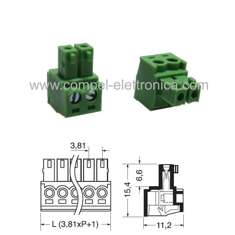 Descrizione: Morsetto europlug femmina passo 3,81mm 2 vie connettore scollegabile