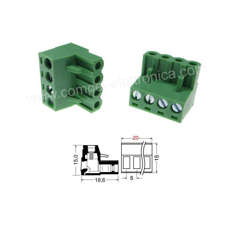 MORSETTIERA FEMMINA A SPINA 4 POLI PASSO 5MM