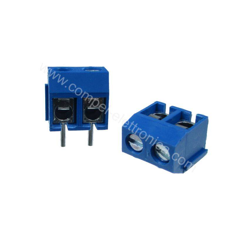 CONNETTORE 2 POLI A MORSETTI PER C.S. PASSO 5MM BLU