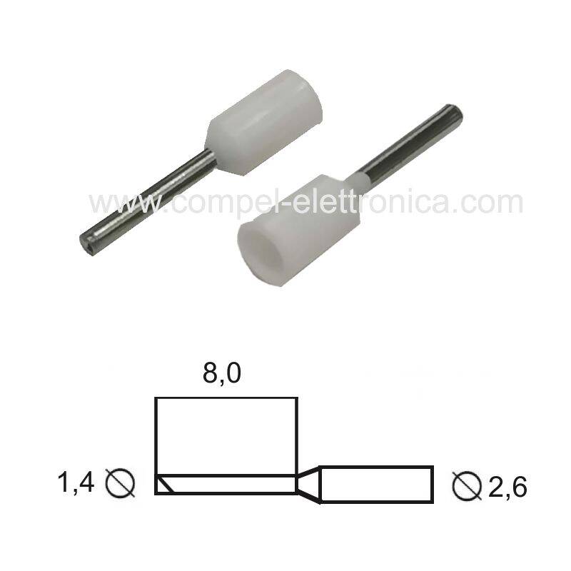 PUNTALINO A BUSSOLA LUNG.8MM/D1,4MM PER CAVO 0,5MM PRE-ISOLATO BIANCO