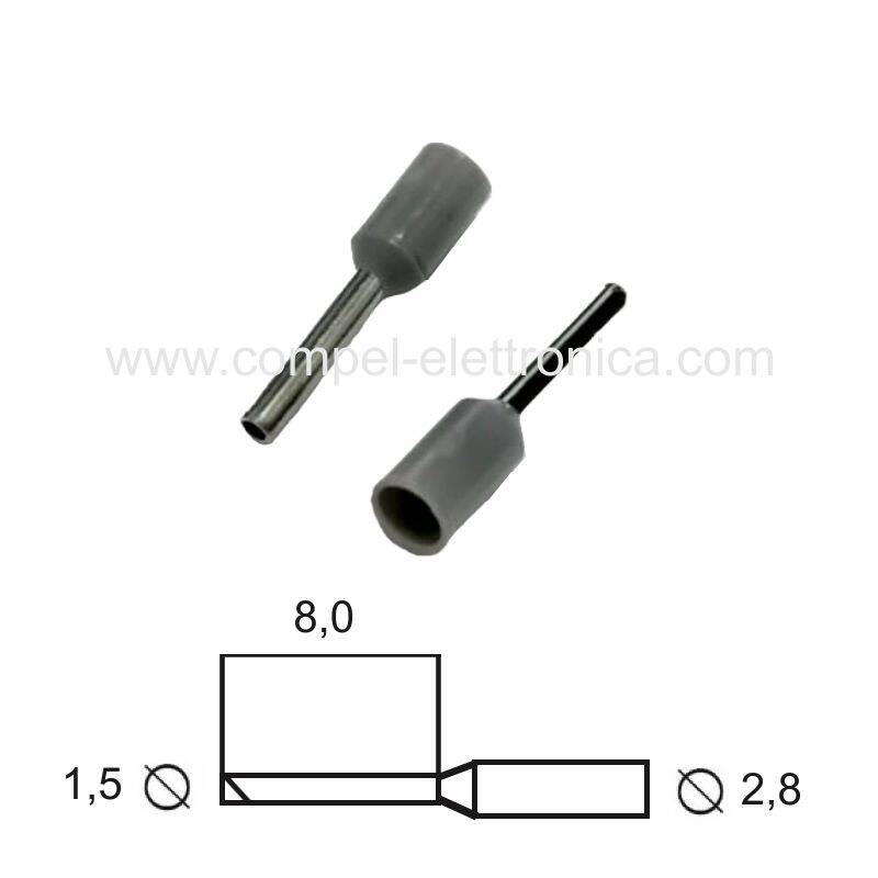PUNTALINO A BUSSOLA LUNG.8MM/D1,5MM PER CAVO 0,75MM PRE-ISOLATO GRIGIO