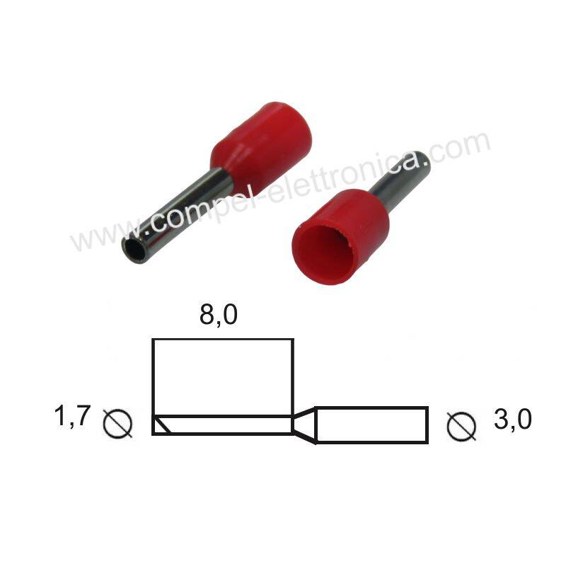 PUNTALINO A BUSSOLA LUNG.8MM/D1,7MM PER CAVO 1MM PRE-ISOLATO ROSSO