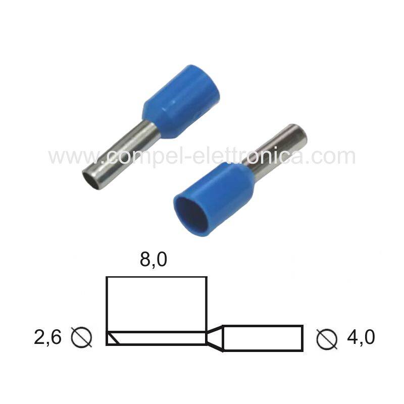 PUNTALINO A BUSSOLA LUNG.8MM/D2,6MM PER CAVO 2,5MM PRE-ISOLATO BLU