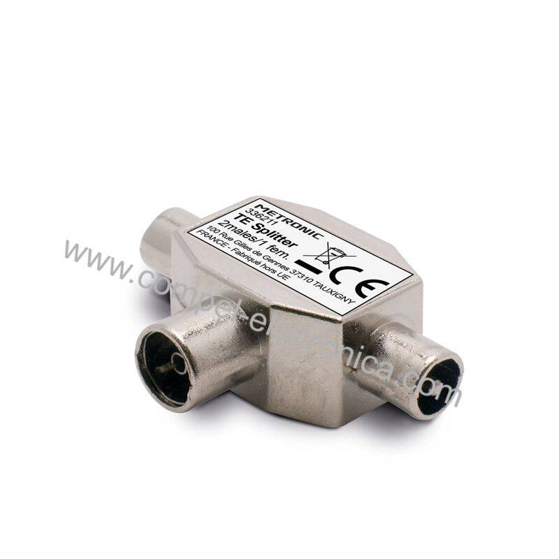 Descrizione: Partitore o sdoppiatore TV coassiali da presa a doppia spina 75 OHM