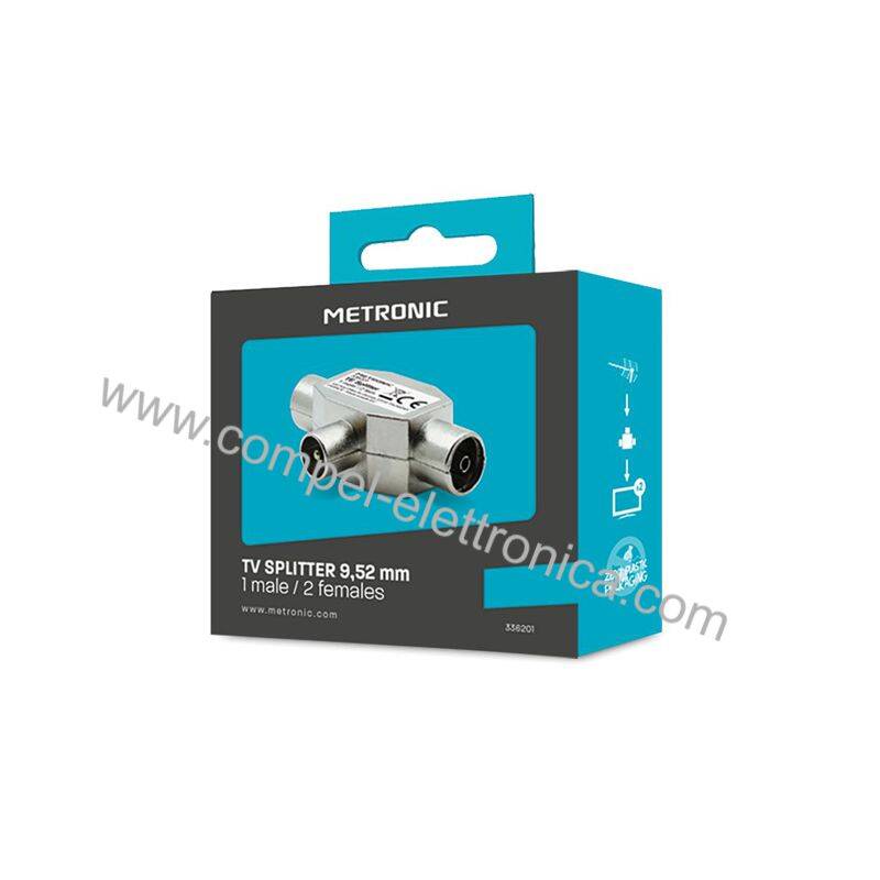 Descrizione: Partitore o sdoppiatore induttivo TV coassiali da spina a doppia presa 75 ohm