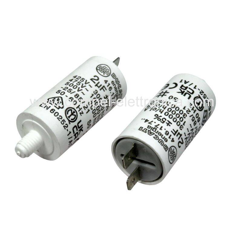 CONDENSATORE 2uF 450Vac PER AVVIAMENTO MOTORI A FASTON DUCATI 25x49mm