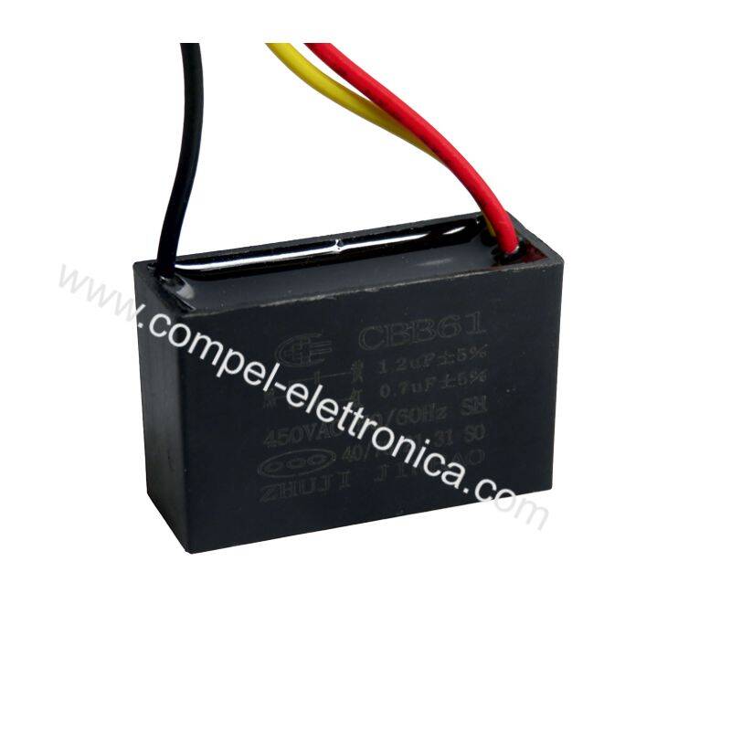 CONDENSATORE DOPPIO 0.7UF / 1.2UF 450Vac IN BOX AVVIAMENTO MOTORI 3 FILI