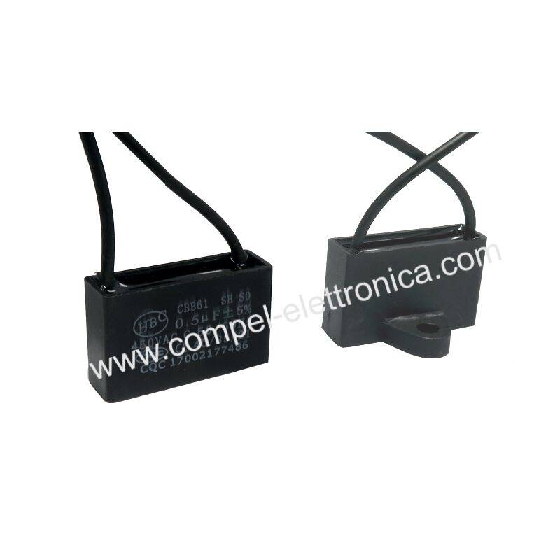CONDENSATORI 0,5UF 450Vac IN BOX PER AVVIAMENTO MOTORI 2 FILI