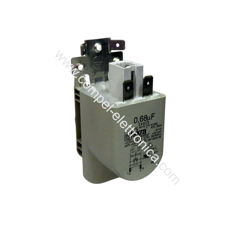 FILTRO ANTIDISTURBO 0,68uf 2x22000pF 470Kohm X1Y2 12,5A 275Vac ORIGINALE