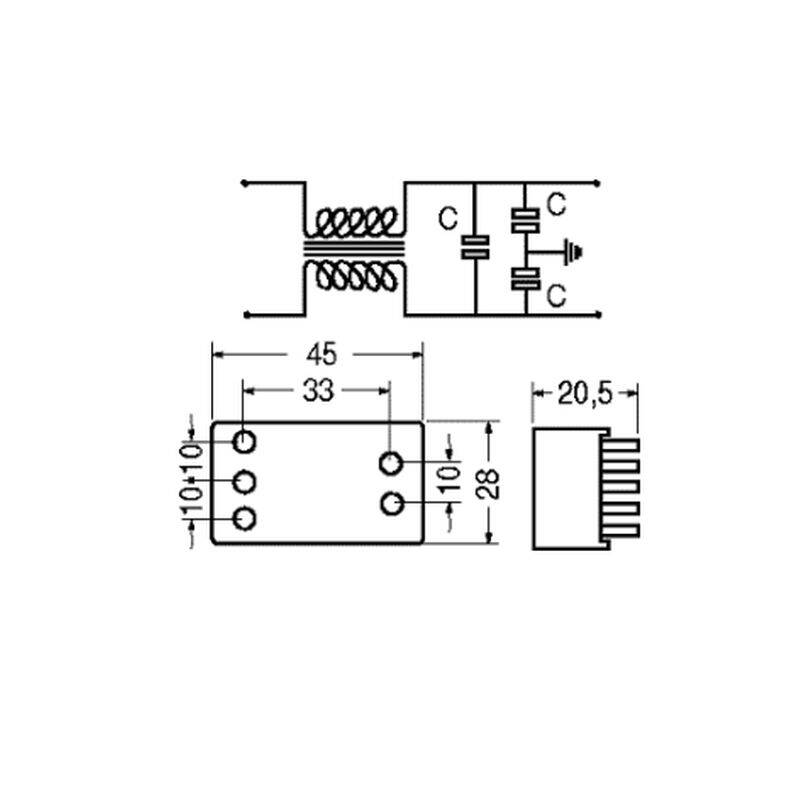 FILTRO ANTIDISTURBO 250Vac 2,5A A CIRCUITO STAMPATO
