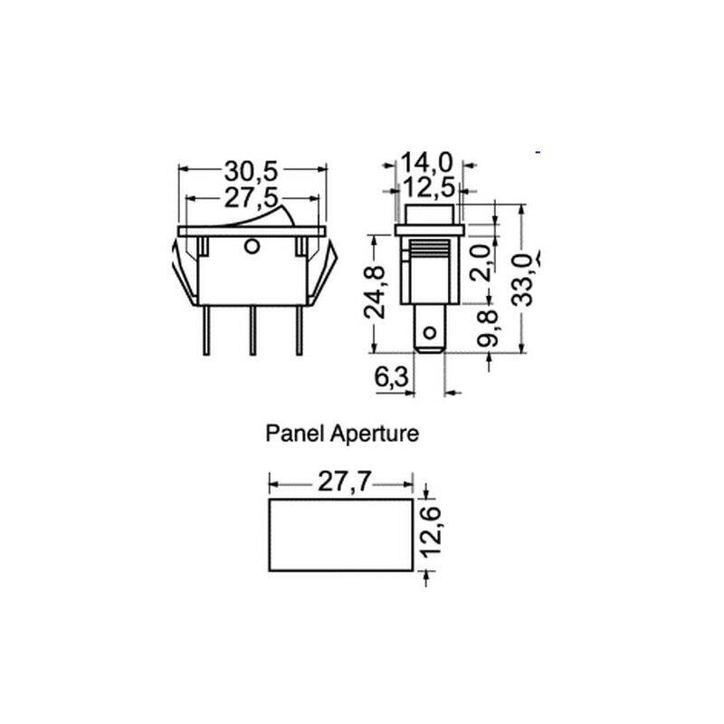 Descrizione: Deviatori unipolari a bascula a bilanciere tasto ROSSO. Tre posizioni 1-0-2